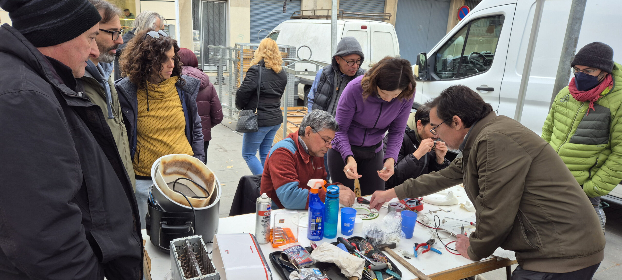 Diumenge 23 de novembre, amb motiu de la Setmana de Prevenció de Residus de Catalunya, vam organitzar a la Rambla de Salt una activitat d’autoreparació. Les persones interessades van portar els seus petits electrodomèstics espatllats, i amb l’ajuda d’en Benjamí, voluntari reparador expert, i la col·laboració de totes les assistents, vam intentar reparar-los, promovent així l’aprenentatge compartit i la reducció de residus.